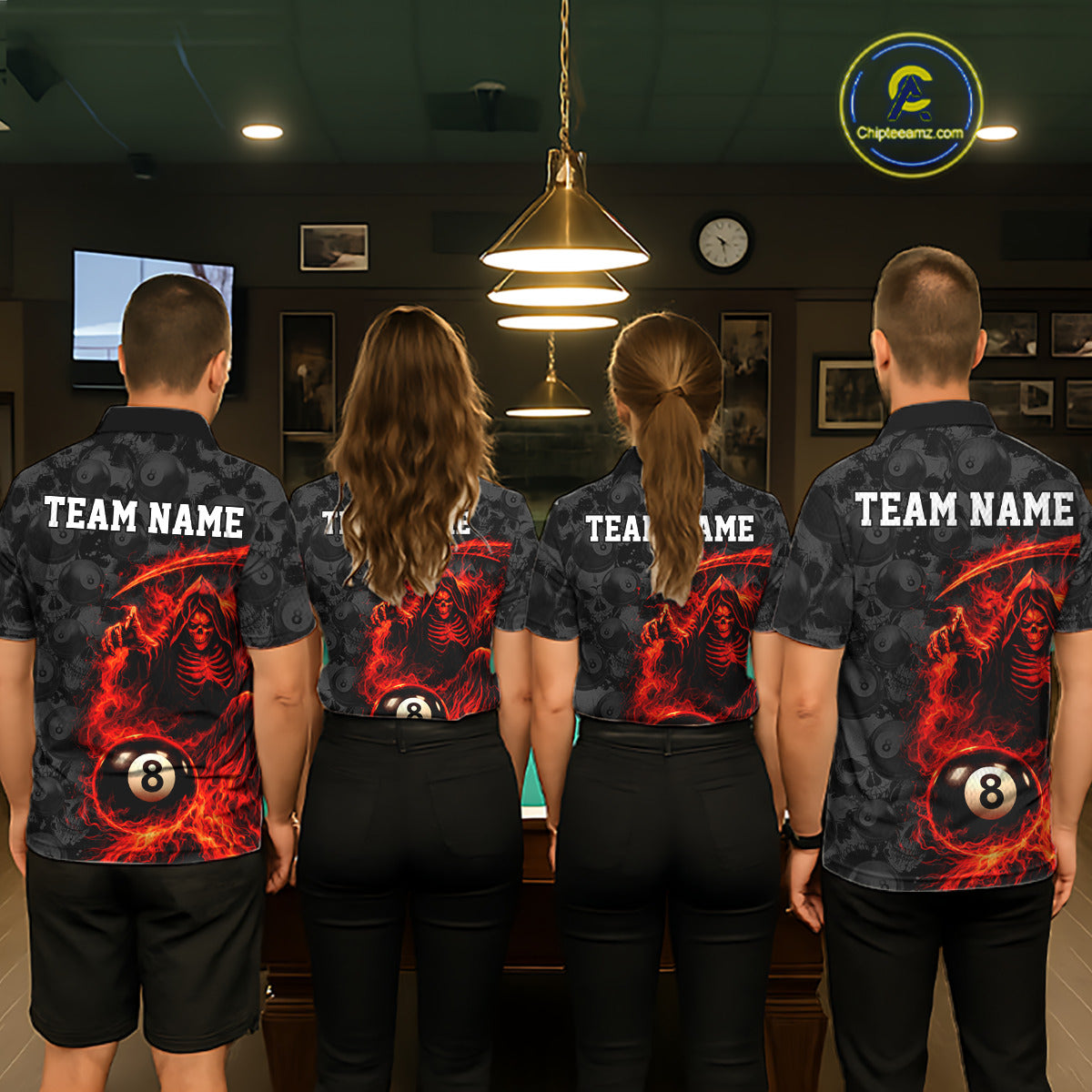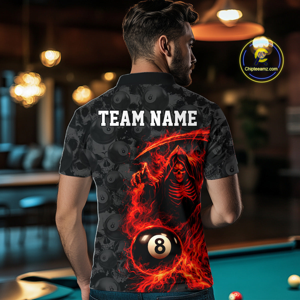 Personalized Red Flaming Grim Reaper 8 Ball Pool Billiard Shirts For Men Billiard Attire Gifts NYN2792