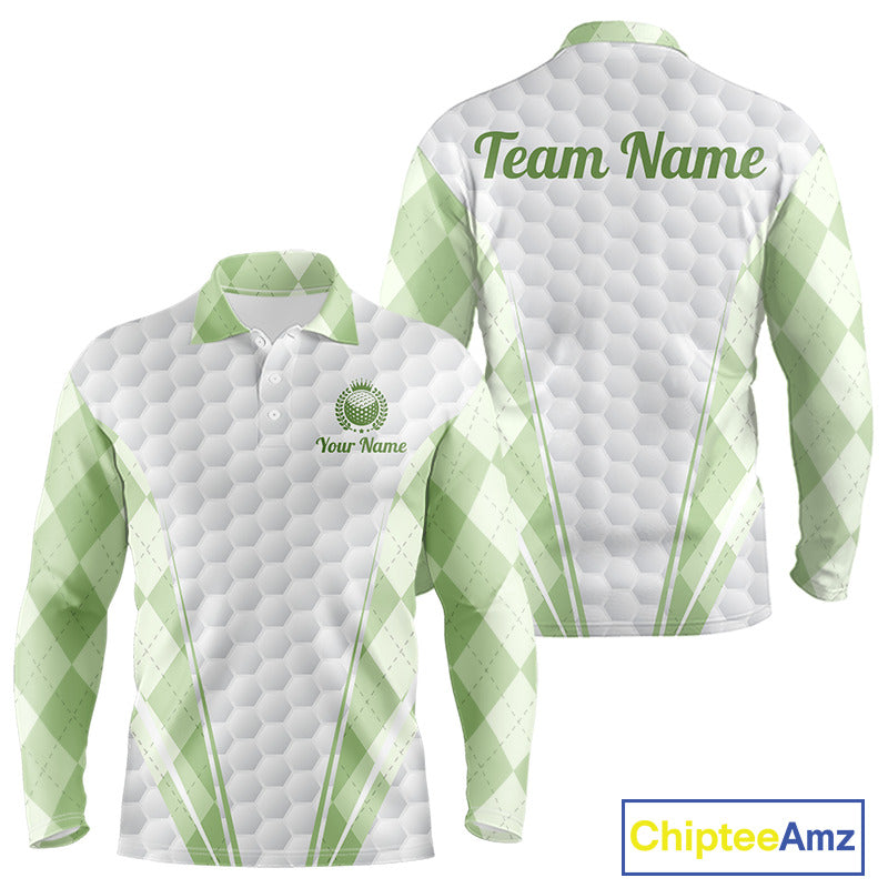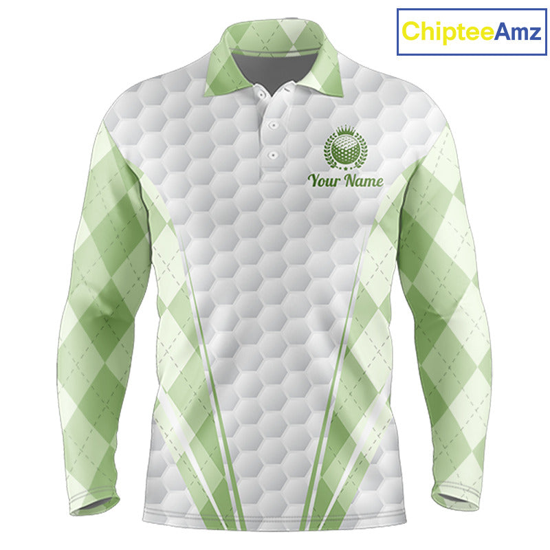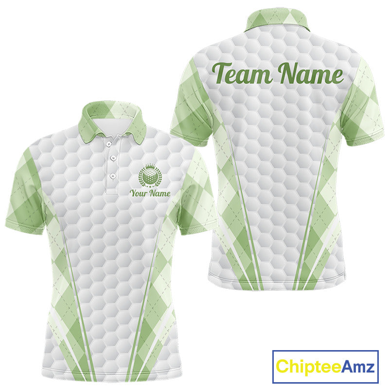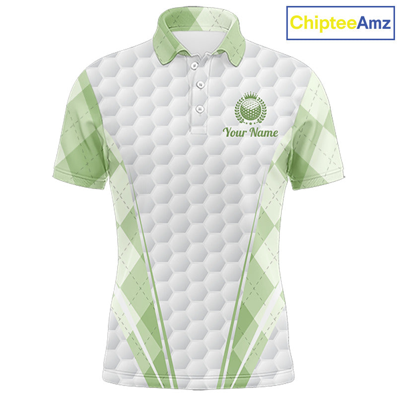 Mens Golf Polo Shirt Argyle Pattern Golf Shirts For Mens Green Argyle And White Golf Ball Gifts NYN2906