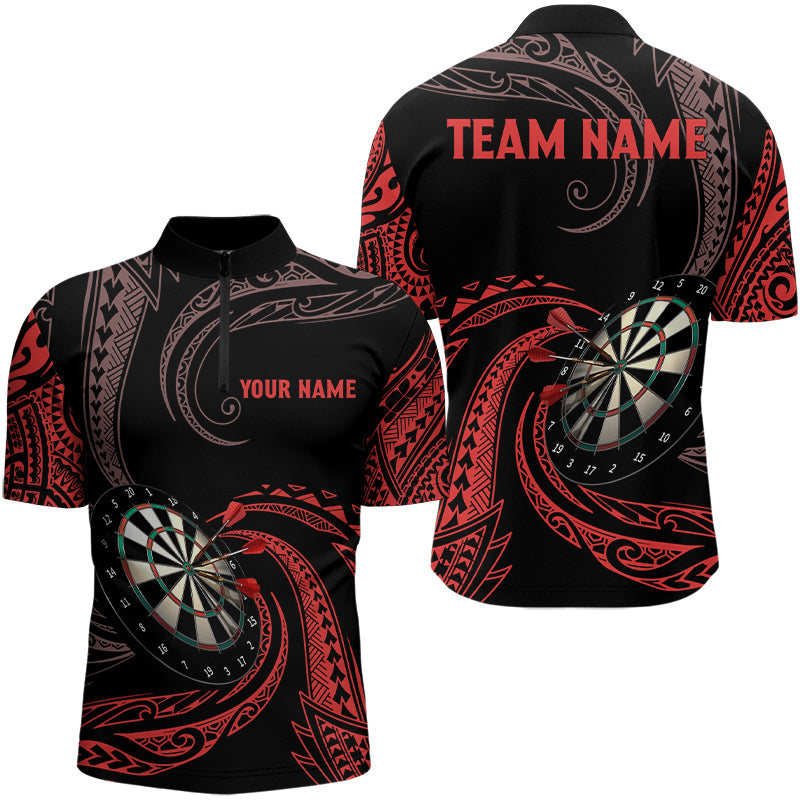 Personalized Red Tribal Darts Polo & Quarter Zip Shirts Custom Men Darts Shirts Dart Jerseys TDM3185