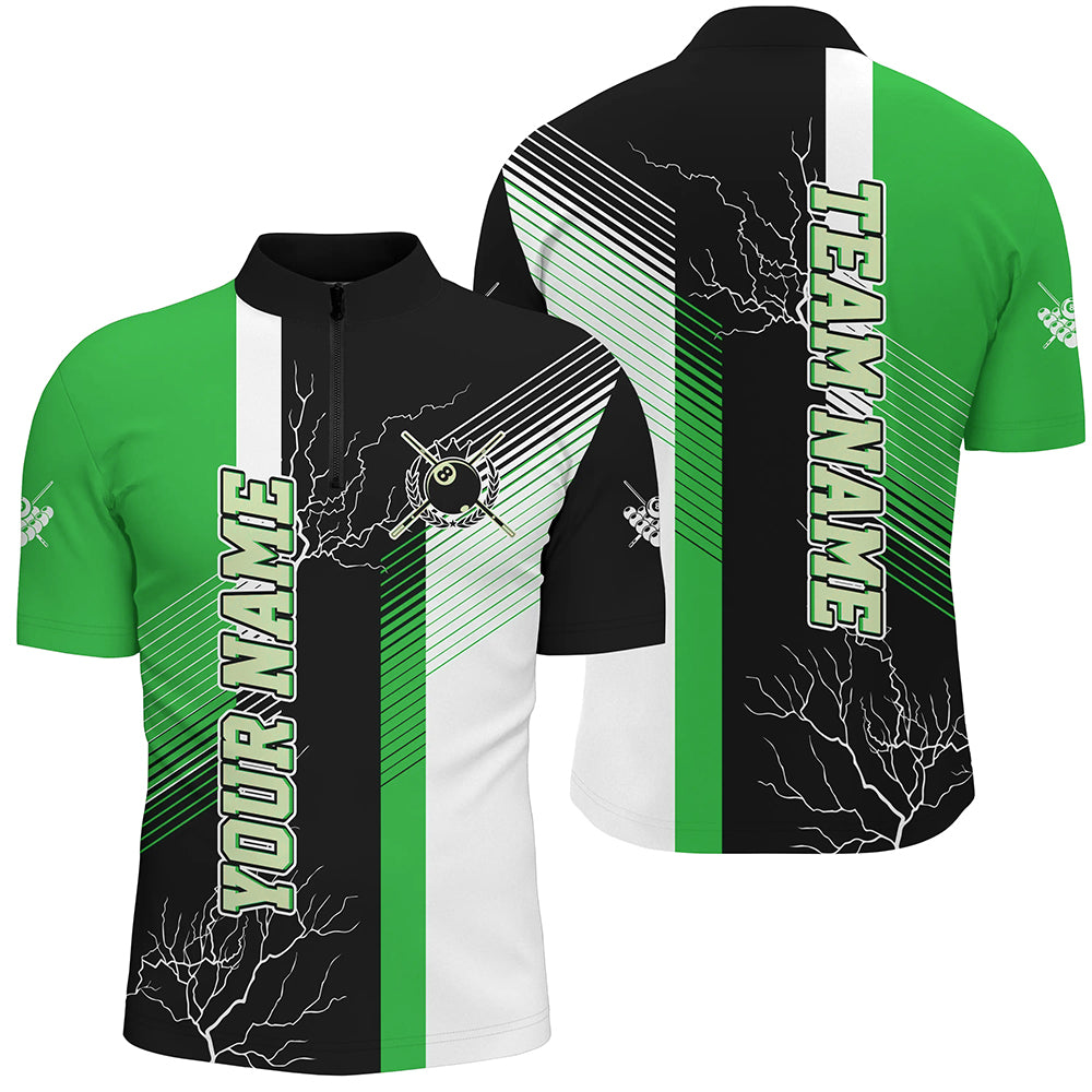 Personalized Black Green Billiard Polo, Quarter Zip For Men Custom 8 Ball Pool Billiard Team Jersey TDM3269