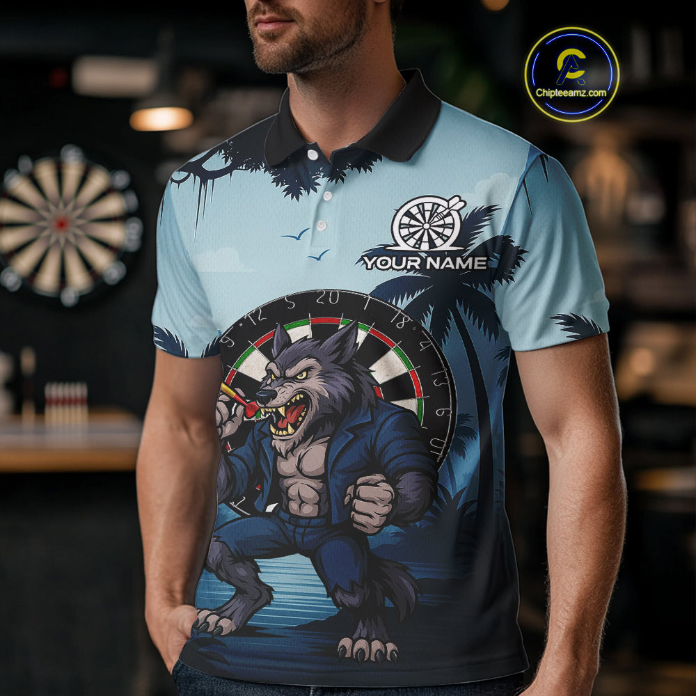 Funny Wolf Jungle Dart Shirts For Men Custom Dart Team Jerseys Polo & 1/4 Zip, Best Darts Gifts TDM4085