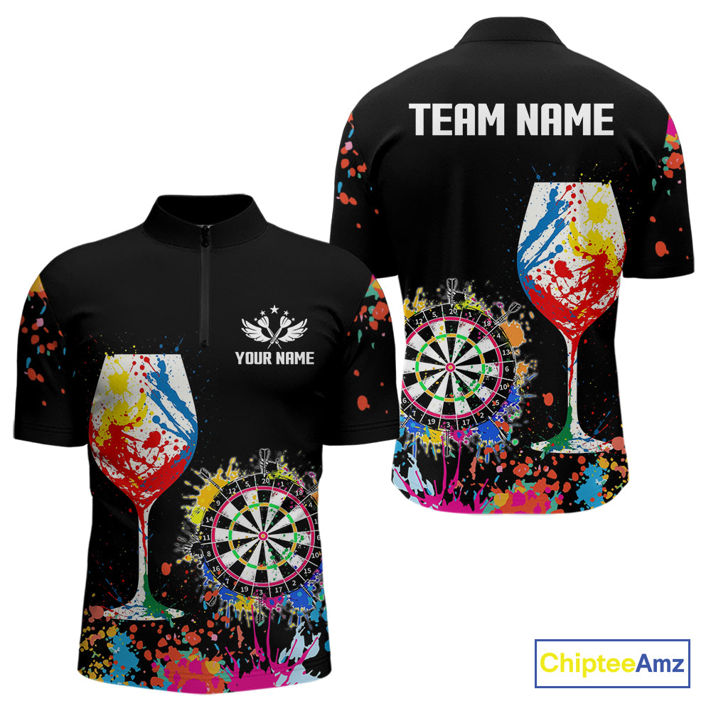 Personalized Colorful Splash Dart Shirts For Men, Funny Wine Glass Custom Darts Jersey Outfit TDM4099