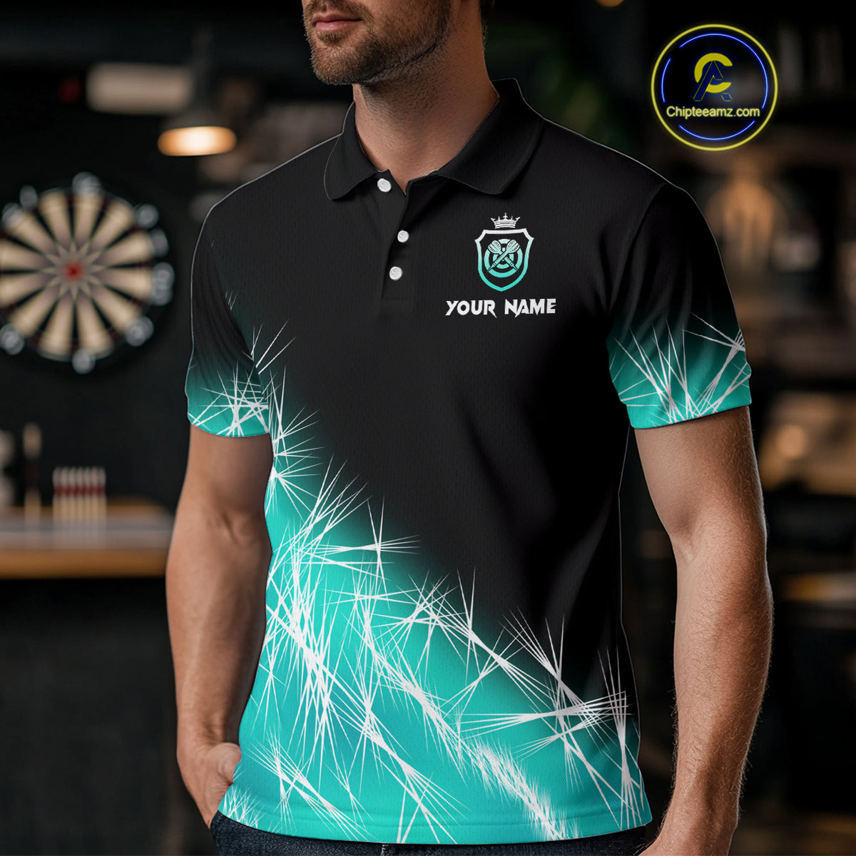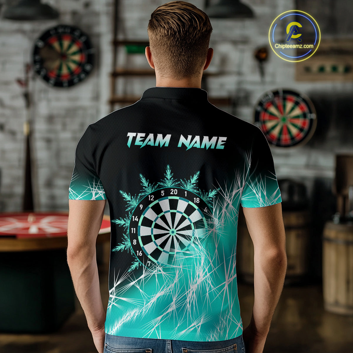 Turquoise Icy Lights Mens Darts Polo & Quarter Zip Custom Dart Shirt For Team Darts Jersey Outfit TDM4150