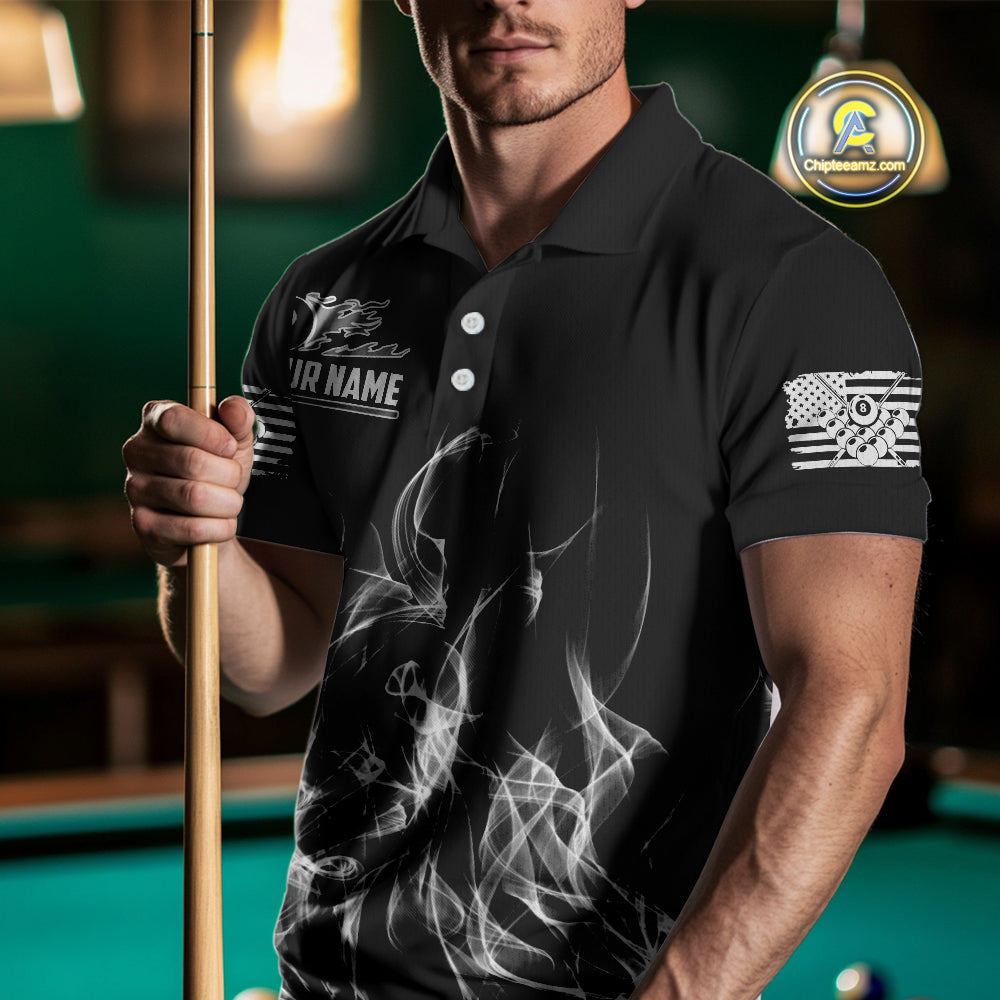 White Black Flaming American Flag Men Billiard Shirt Custom Patriotic Pool Player Billiard Jersey TDM4195