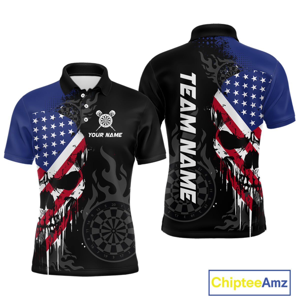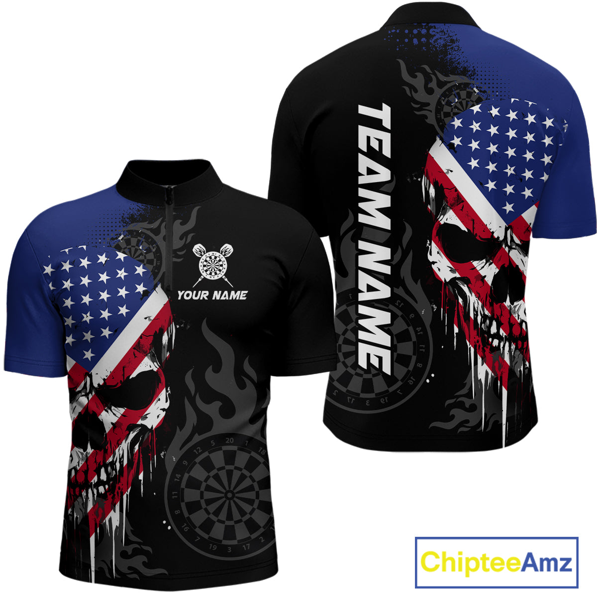 Grunge American Flag Skull Darts Shirt For Men Custom Patriotic Darts Team Jerseys Polo & 1/4 Zip TDM4197