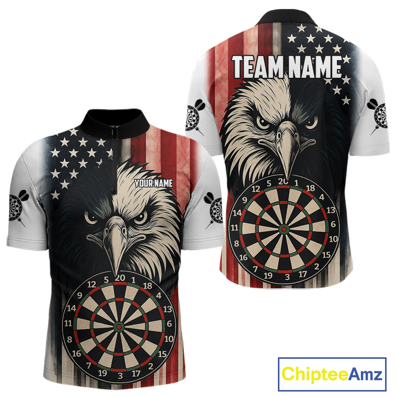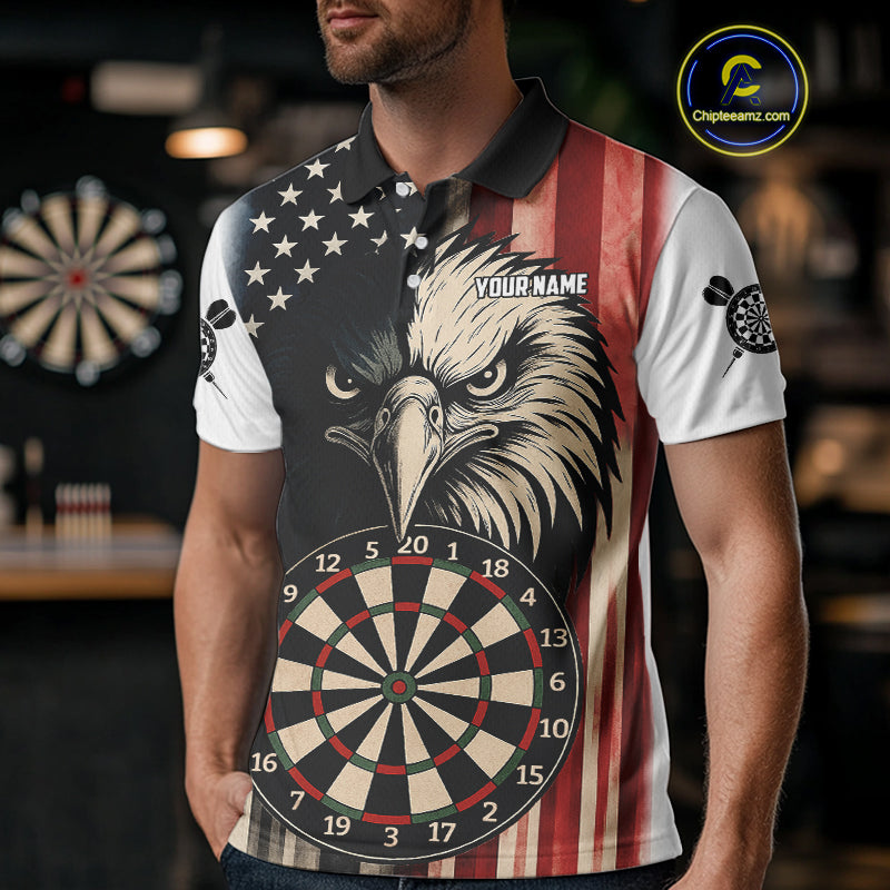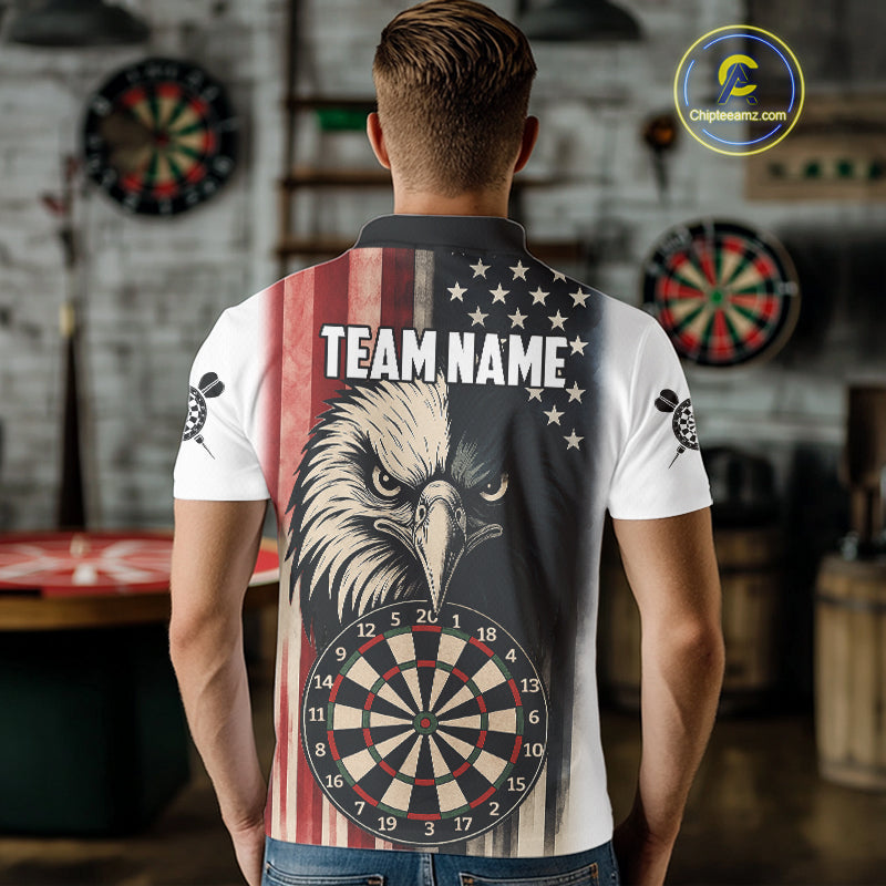 Personalized Vintage American Flag Eagle Darts Shirt For Men Custom Patriotic Darts Team Jerseys TDM4212