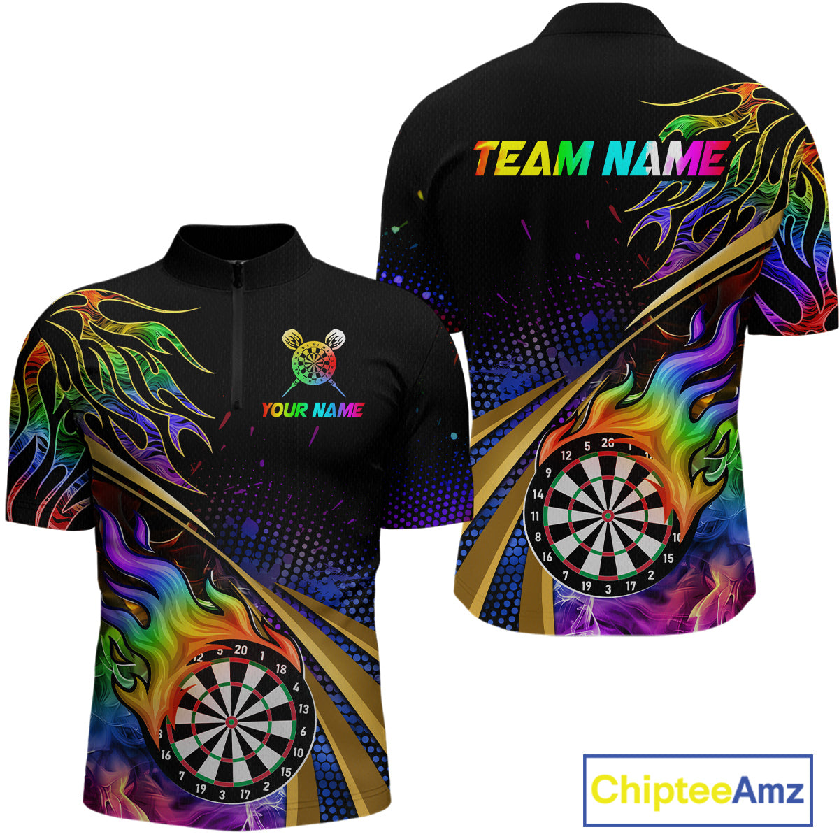 Personalized Colorful Flame Darts Shirt For Men Custom Darts League Team Jerseys Polo & 1/4 Zip TDM4215