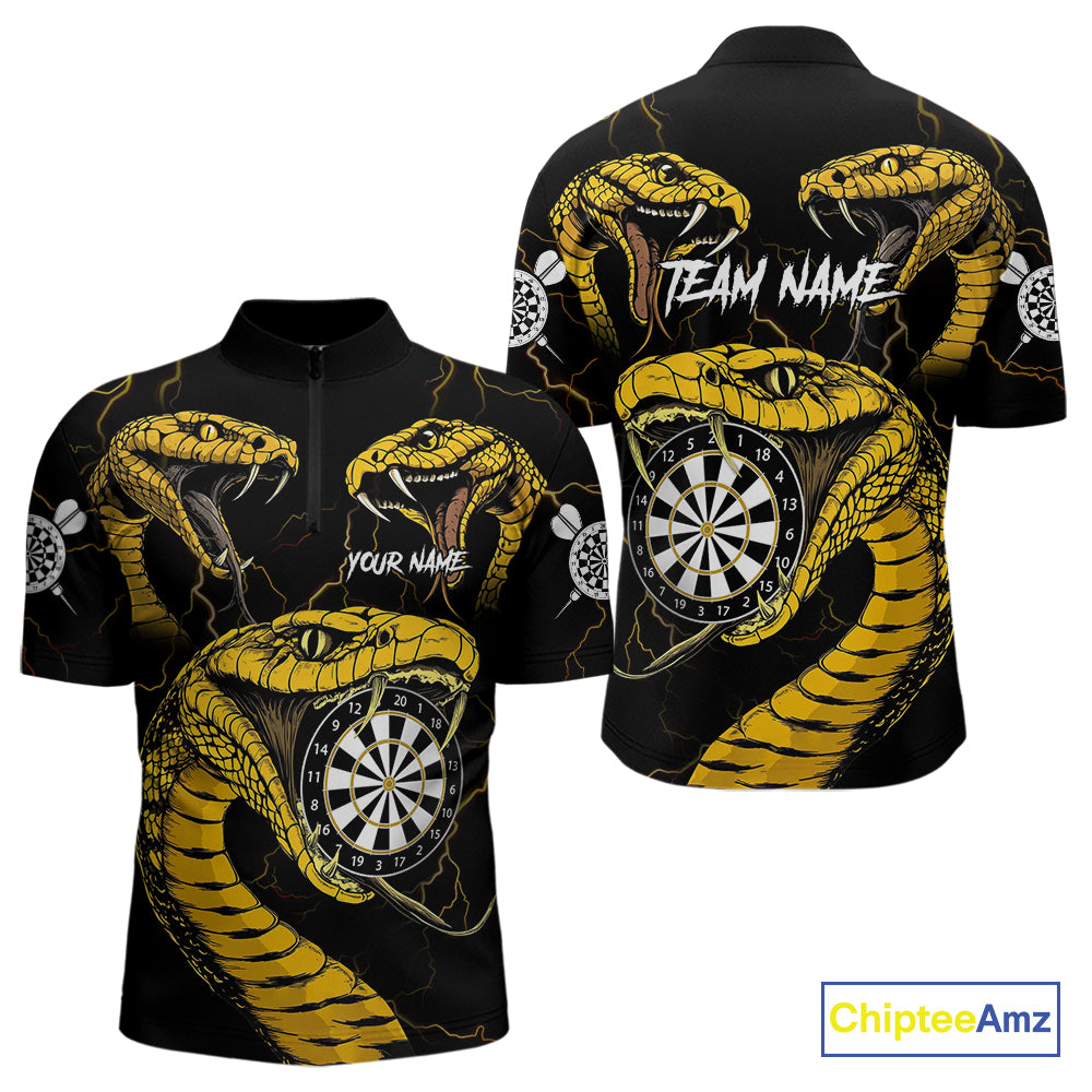 Personalized Black Yellow Cobra Snake Darts Shirt For Men, Darts Team Jerseys Polo & 1/4 Zip TDM4249