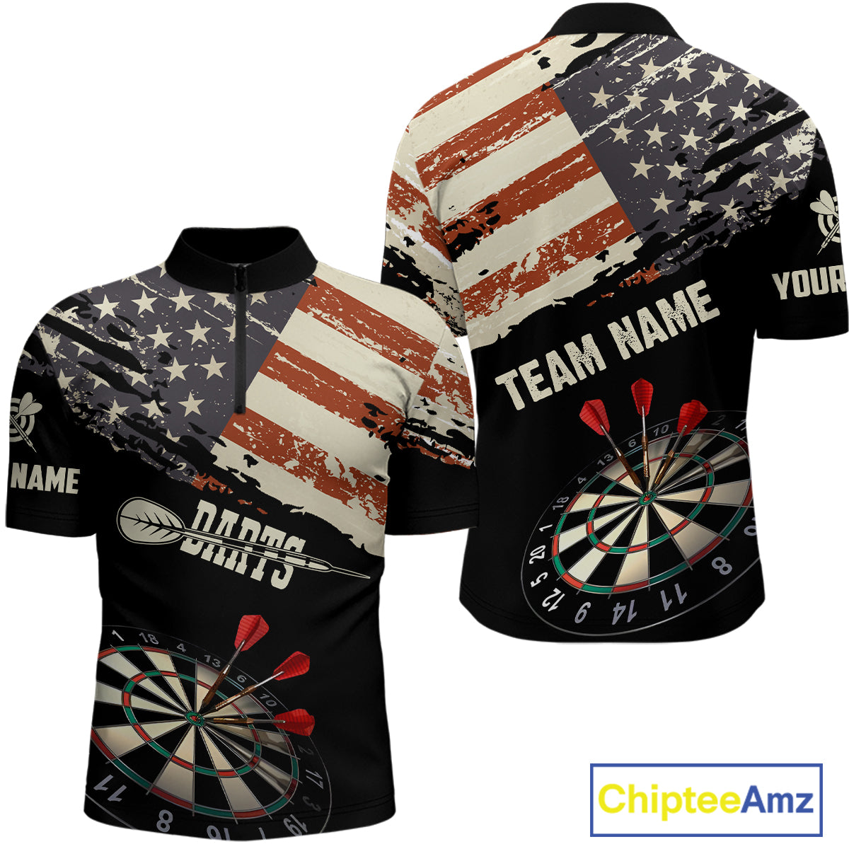 Grunge Vintage American Flag Custom Retro Dart Shirts For Men, Pride Team Patriotic Dart Jerseys TDM4266