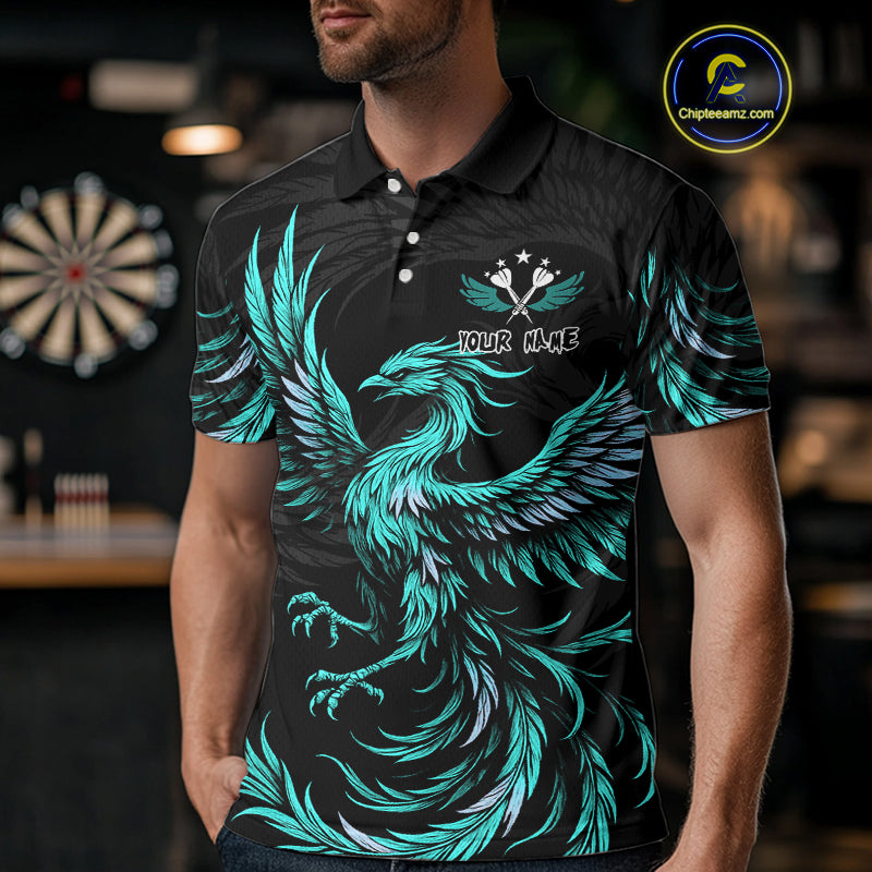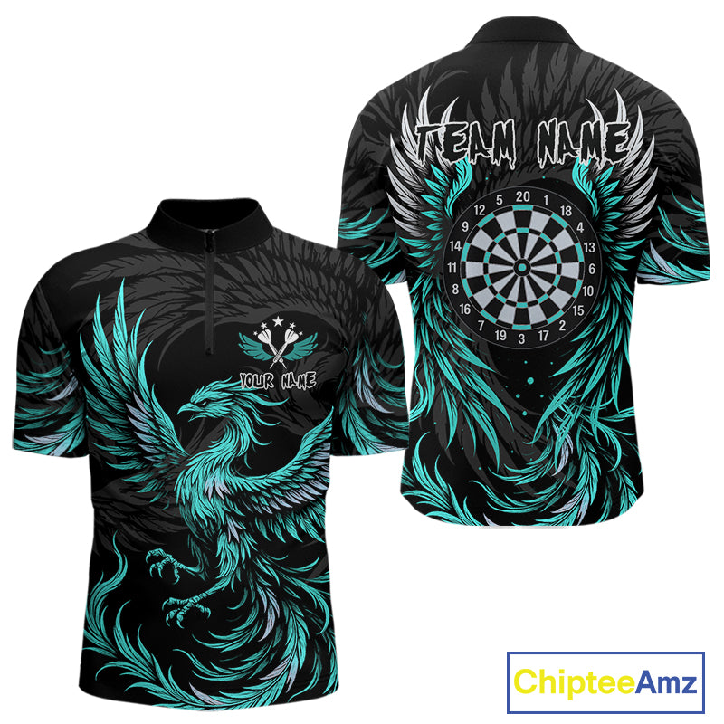 Personalized Phoenix Dartboard Wings Men's Dart Shirts Custom Black & Turquoise Darts Team Jerseys TDM4273