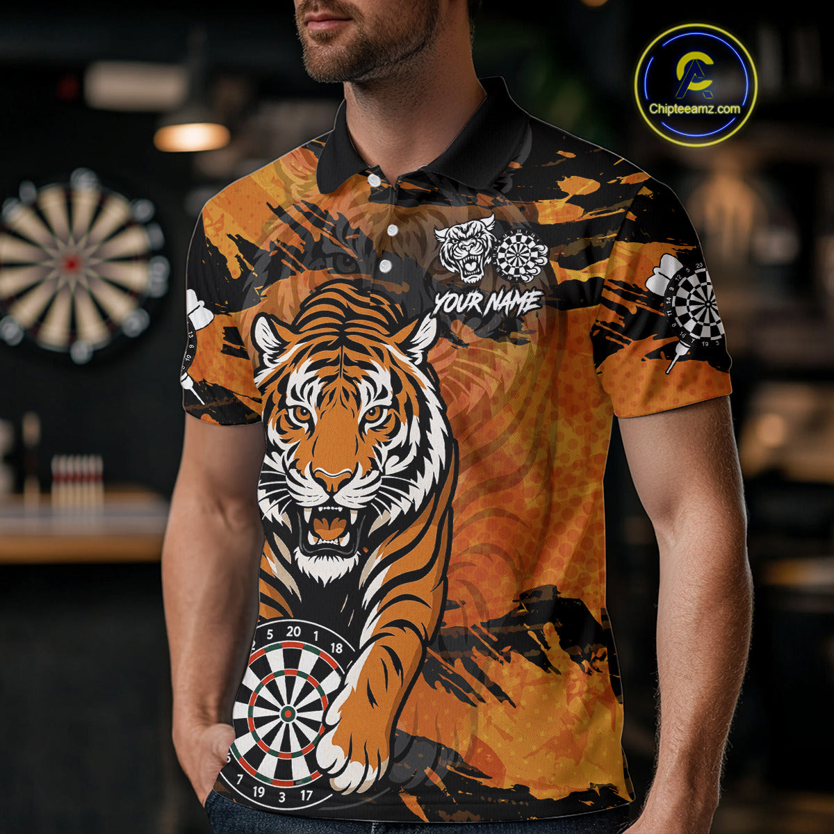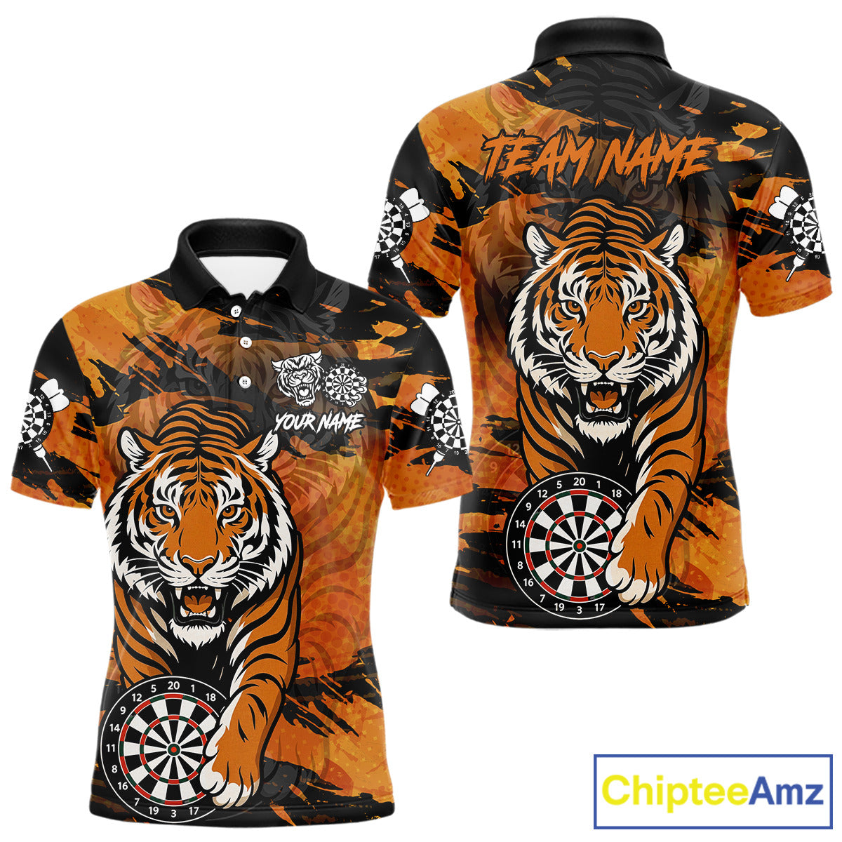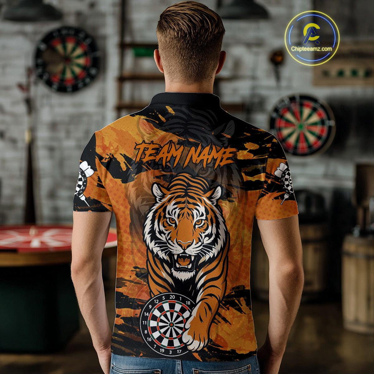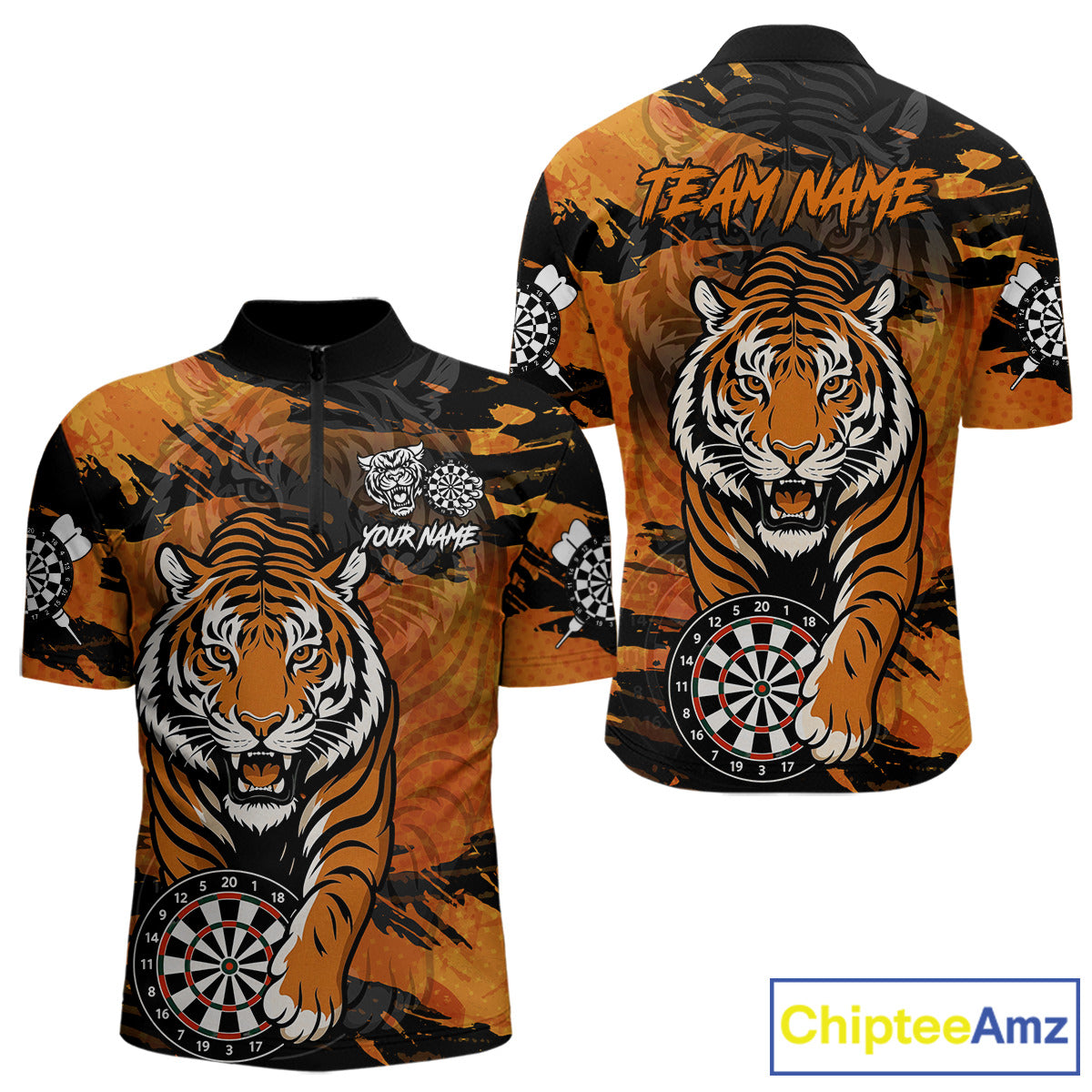 Personalized Black And Orange Tiger Darts Shirt For Men Custom Darts Jersey Team Polo & 1/4 Zip TDM4275