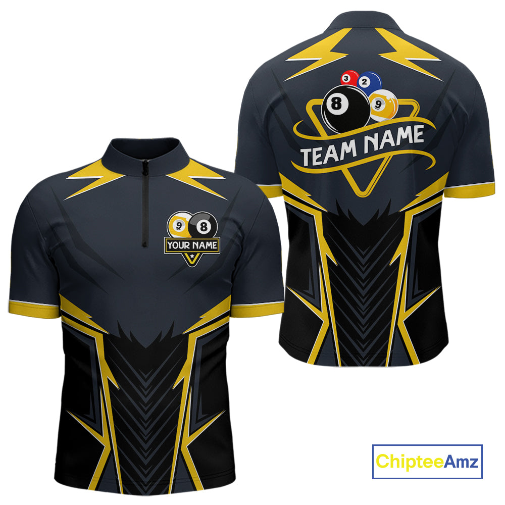 Billiard Jersey For Men Custom Polo & 1/4 Zip Billiard Team Shirt, 8 & 9 Ball Pool Shirt|Yellow TDM4330