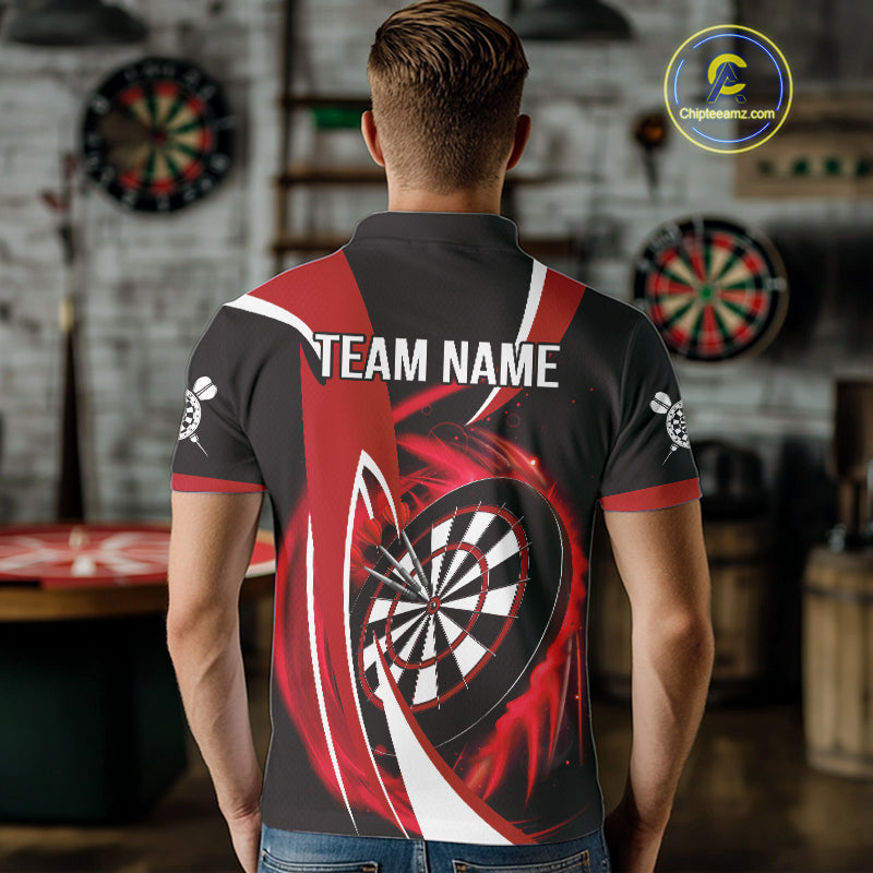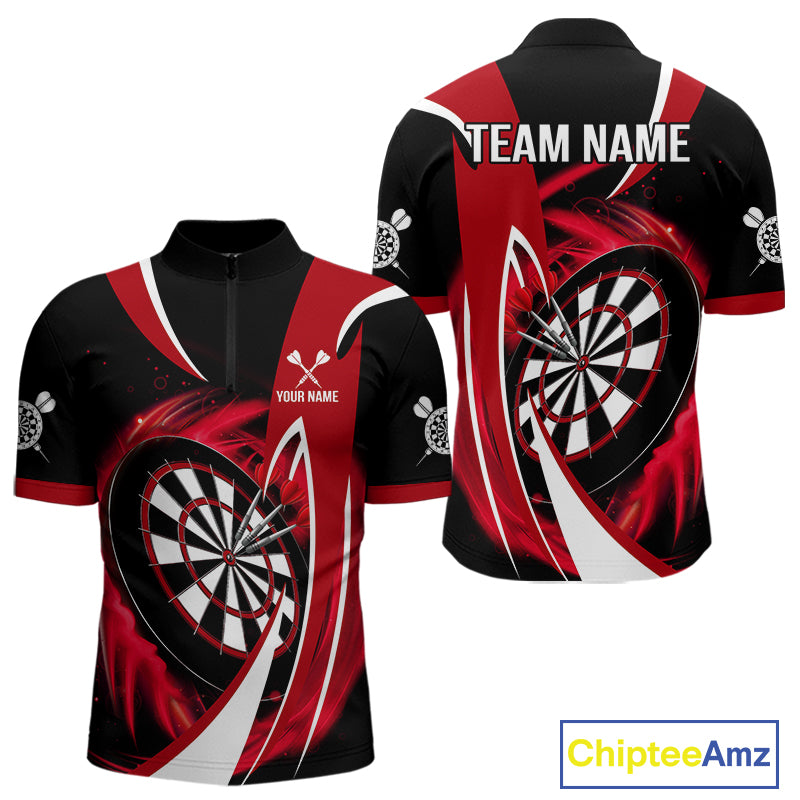 Personalized Red And Black Darts Shirt For Men Custom Darts League Team Polo & 1/4 Zip Jerseys TDM4406