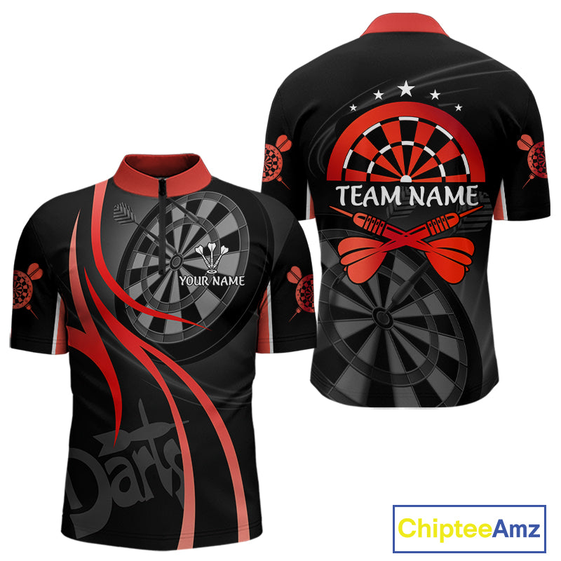 Black And Red Darts Jersey For Men Custom Team Polo & Quarter Zip Darts Shirt Uniform TDM4488