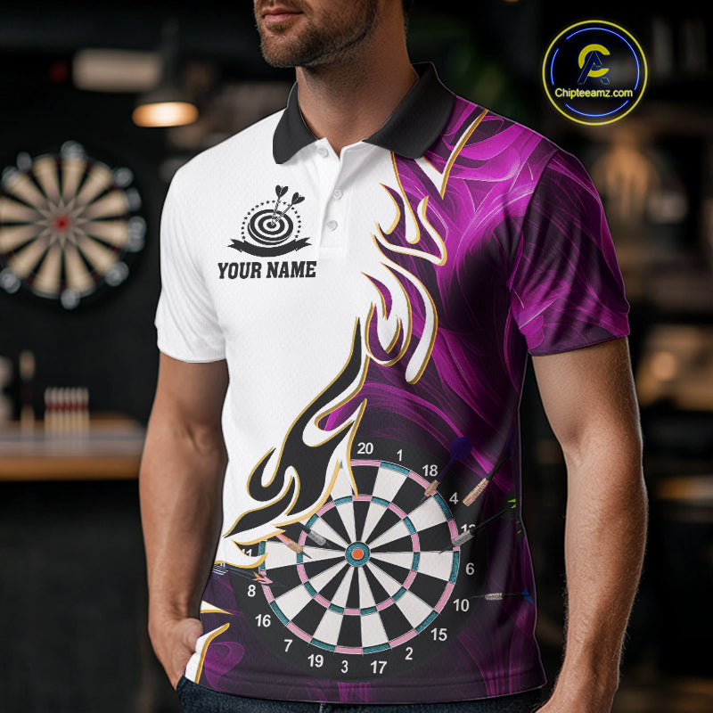 Personalized Purple Flaming Darts Jersey For Men Custom Darts Team Shirts Polo & Quarter Zip TDM4513