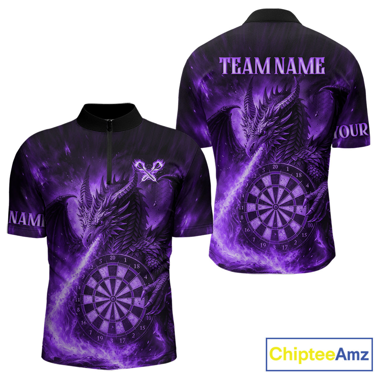Purple Flaming Dragon Darts Jersey For Men Custom Polo & Quarter Zip Darts League Team Shirt TDM4556