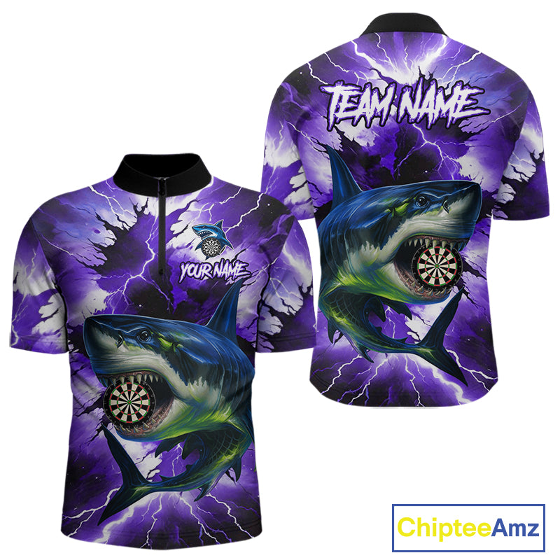 Thunder Lightning Storm Shark Darts Shirt For Men Custom Purple Darts Team Jersey Polo & 1/4 Zip TDM4570