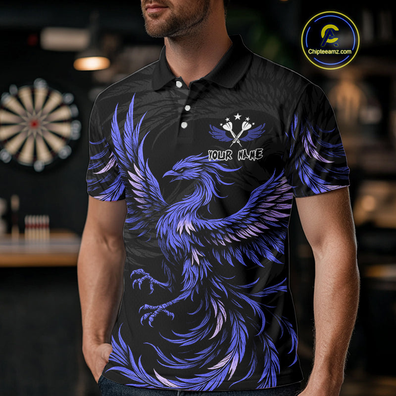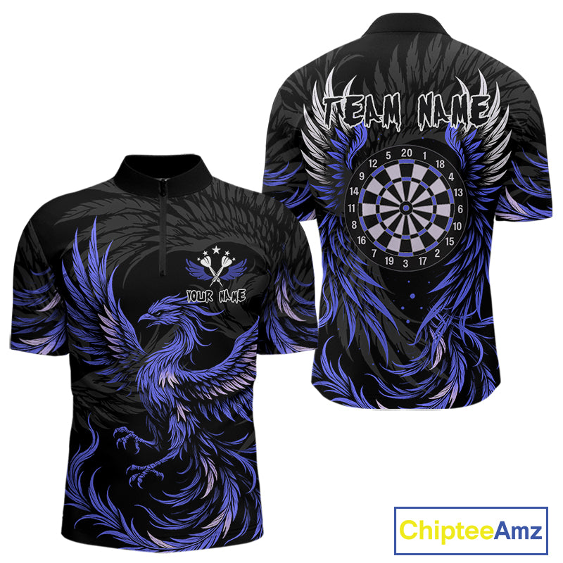 Personalized Phoenix Dartboard Wings Men's Dart Shirts Custom Blue And Black Darts Team Jerseys TDM4584