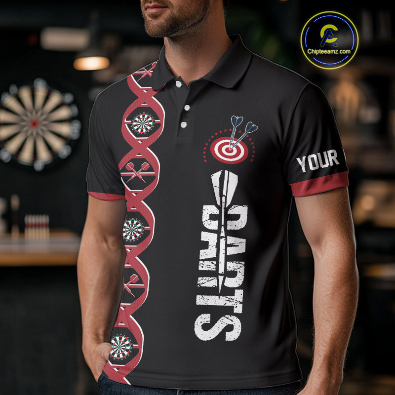 Personalized DNA Darts Shirt For Men Custom Black And Red Funny Darts Jersey Team Polo & 1/4 Zip TDM4617