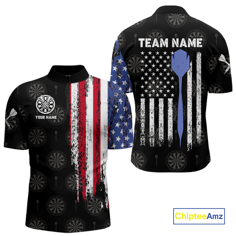 Personalized Grunge American Flag Dart Polo & Quarter Zip For Men Custom Patriotic Darts Jerseys TDM4618