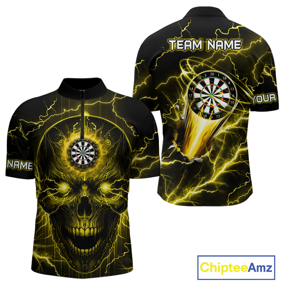 Personalized Yellow Darts Skull Shirt For Men Custom Polo & 1/4 Zip Lightning Thunder Darts Jersey TDM4622