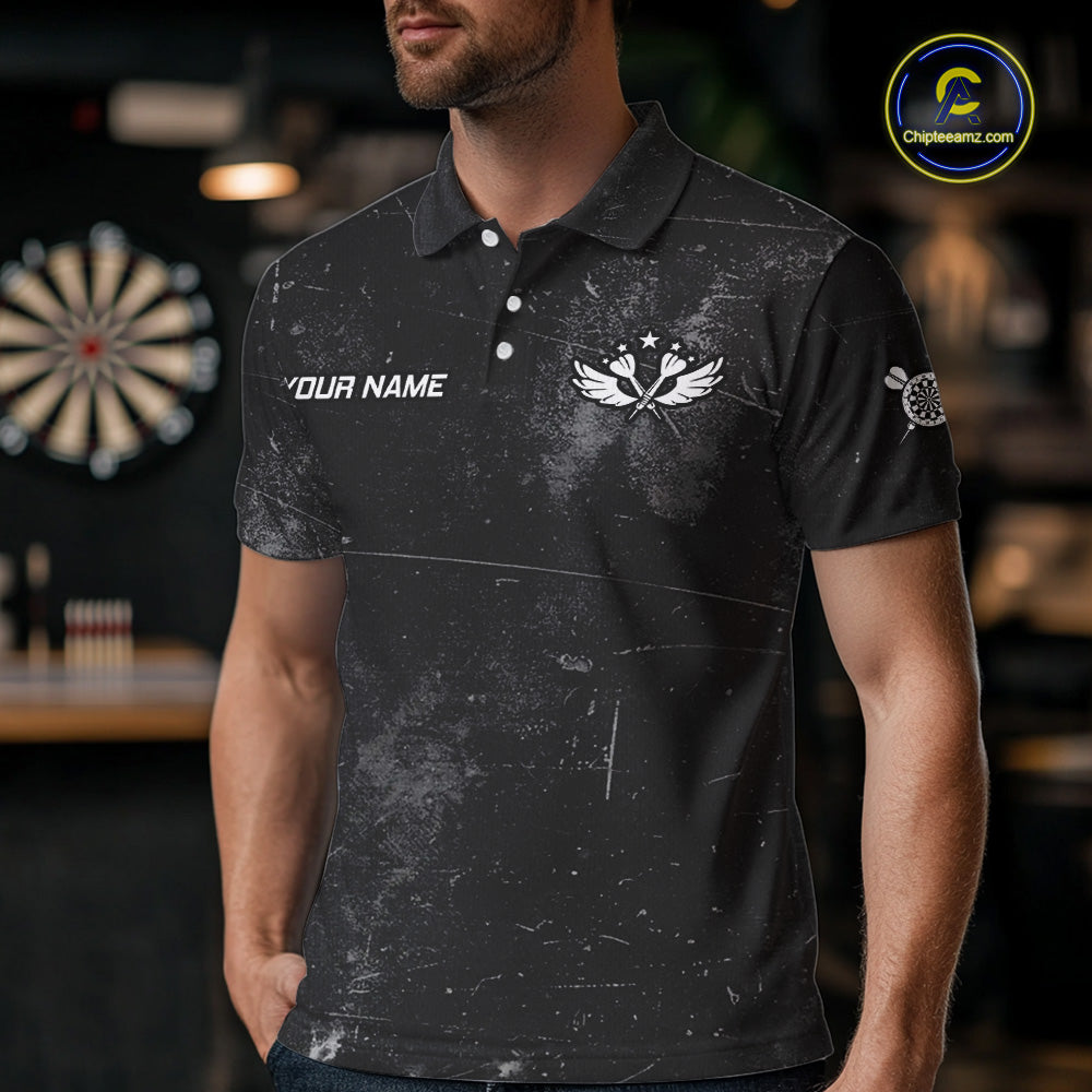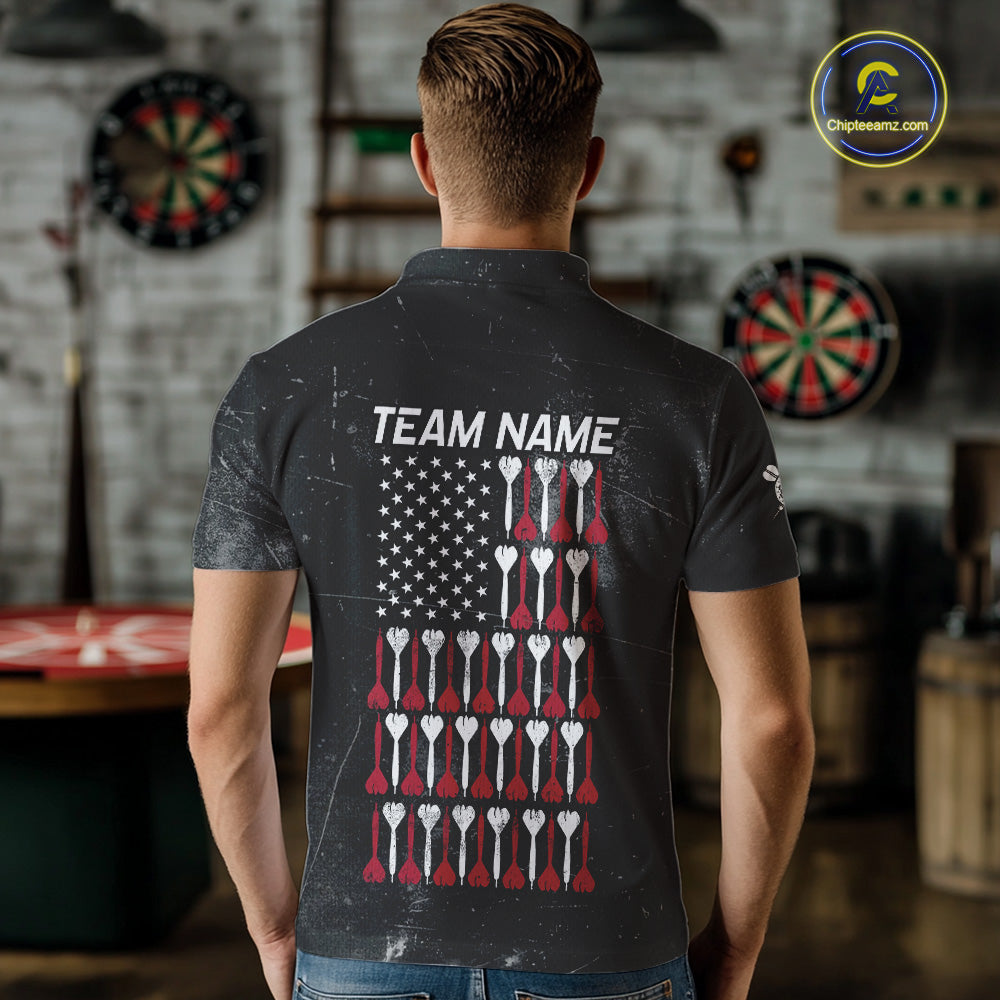 American Flag Black Grunge Darts Polo & 1/4 Zip Custom Darts Shirt For Men Patriotic Dart Jersey TDM4700
