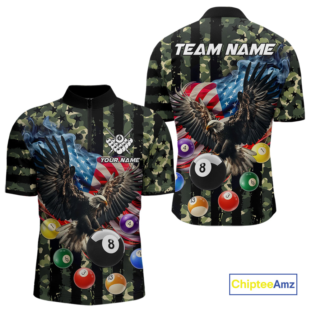 Green Camo American Flag Eagle 8 Ball Billiard Shirt For Men Custom Patriotic Pool Team Jerseys TDM4810