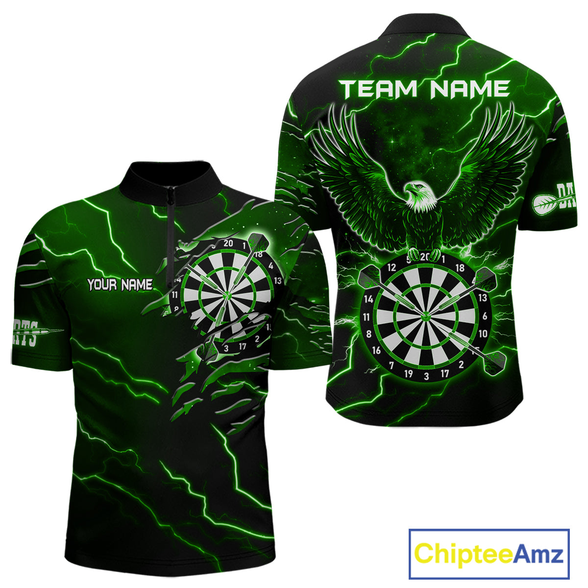 Personalized Thunder Lightning Eagle Green Darts Shirt Polo & Quarter Zip For Men Dart Team Jersey TDM4834