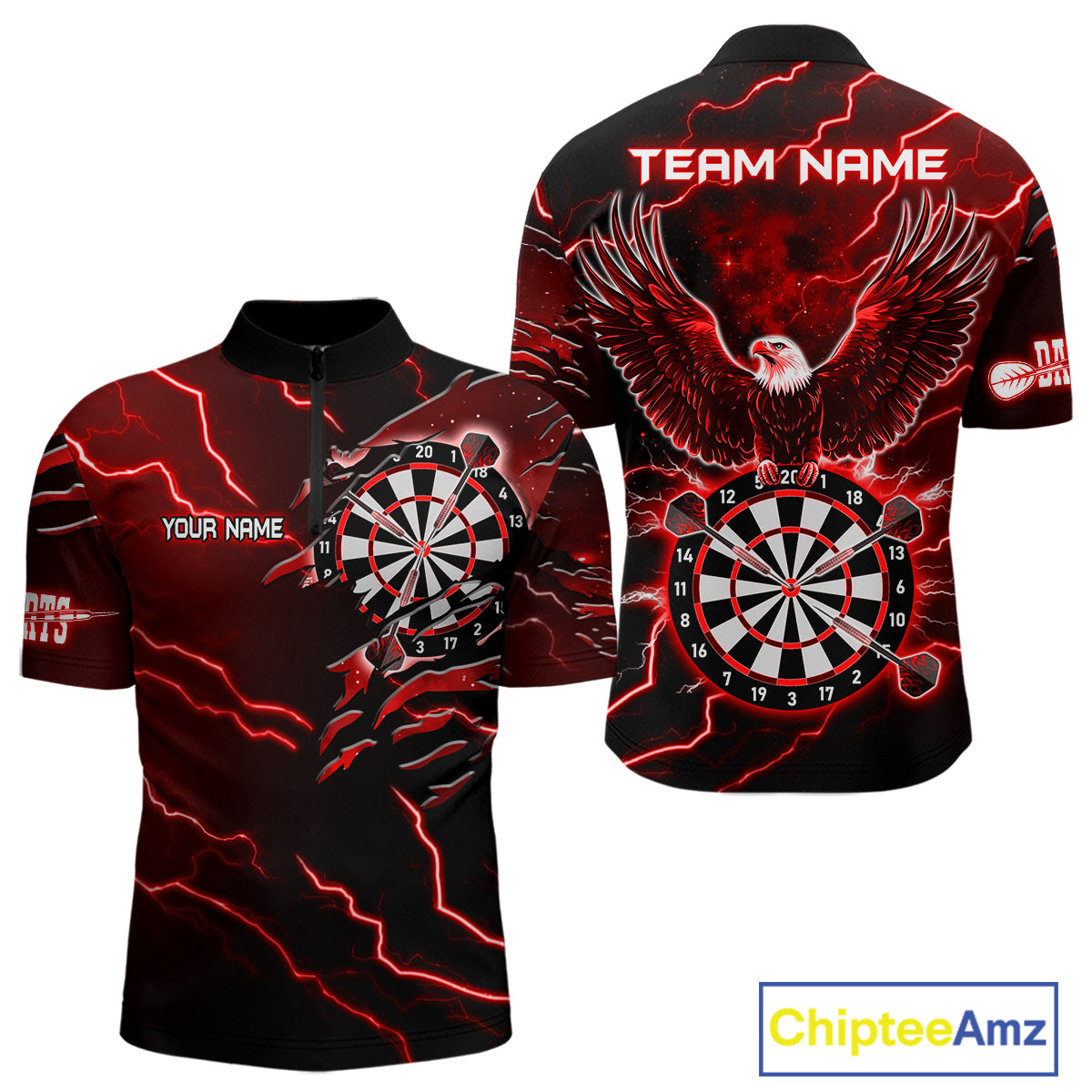Personalized Thunder Lightning Eagle Red Darts Shirt Polo & Quarter Zip For Men Dart Team Jersey TDM4835