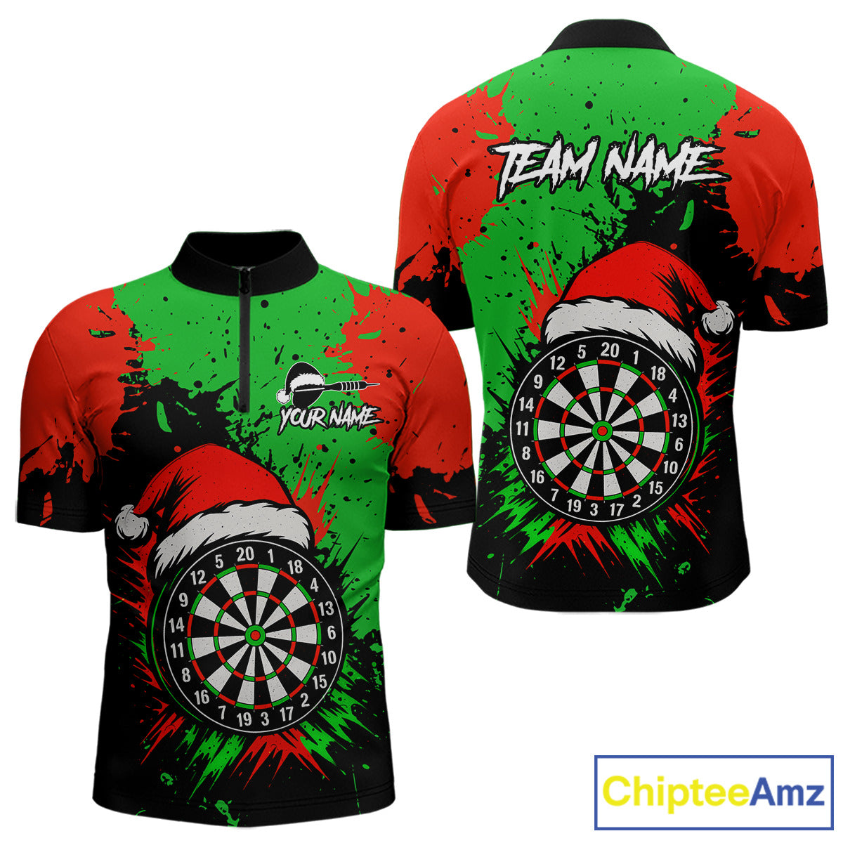 Funny Green And Red Splash Santa Christmas Darts Shirt For Men Custom Xmas Gifts Darts Jersey TDM4847