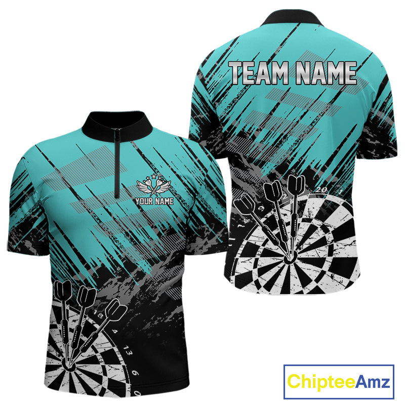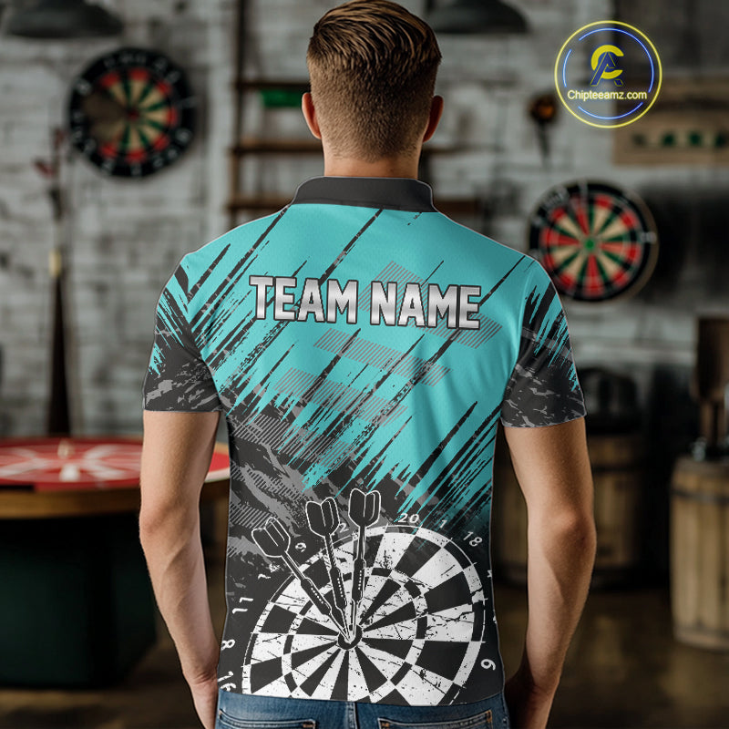 Turquoise Grunge Darts Shirts For Men Custom Dart Jersey With Pocket Option TDM4855