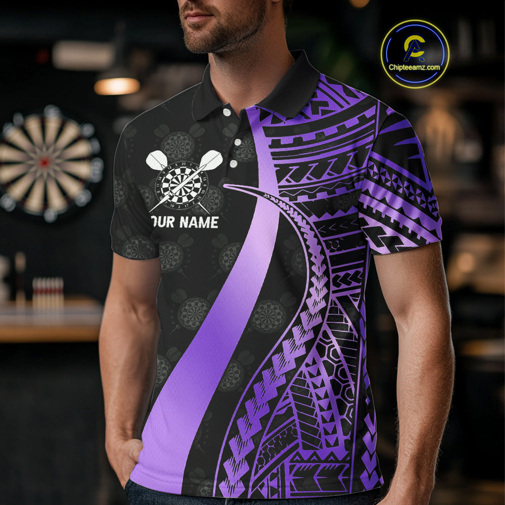 Personalized Black And Purple Tribal Dart Shirts For Men Custom Darts Jersey Team Polo & 1/4 Zip TDM4914