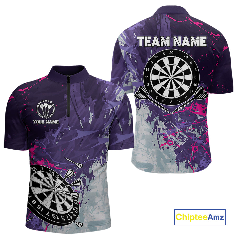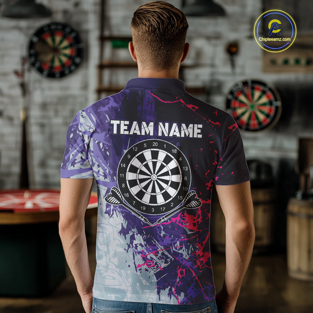 Purple Grunge Darts Shirt With Pocket Option For Men Custom Darts Jersey TDM4977