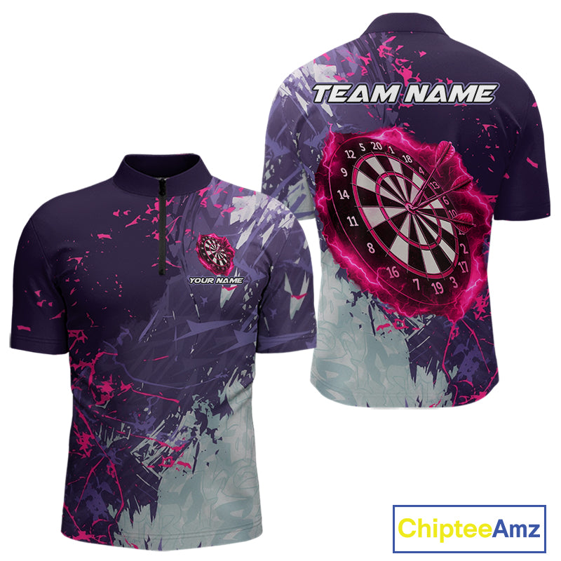 Pink And Purple Grunge Darts Polo & Quarter Zip Custom Darts Shirt For Men, Darts Team Jersey TDM4978