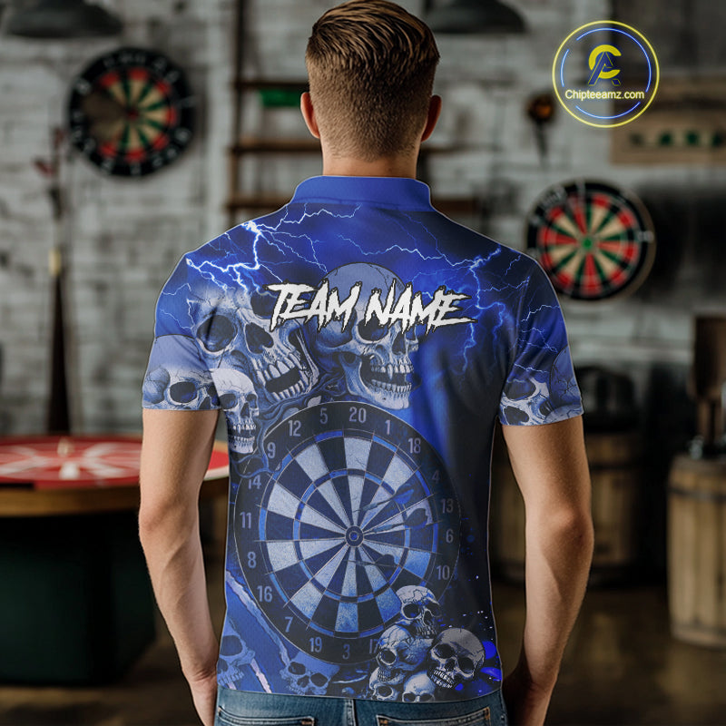 Blue Funny Skull Lightning Darts Shirt For Men Custom Darts Team Jersey Polo & Quarter Zip TDM4980