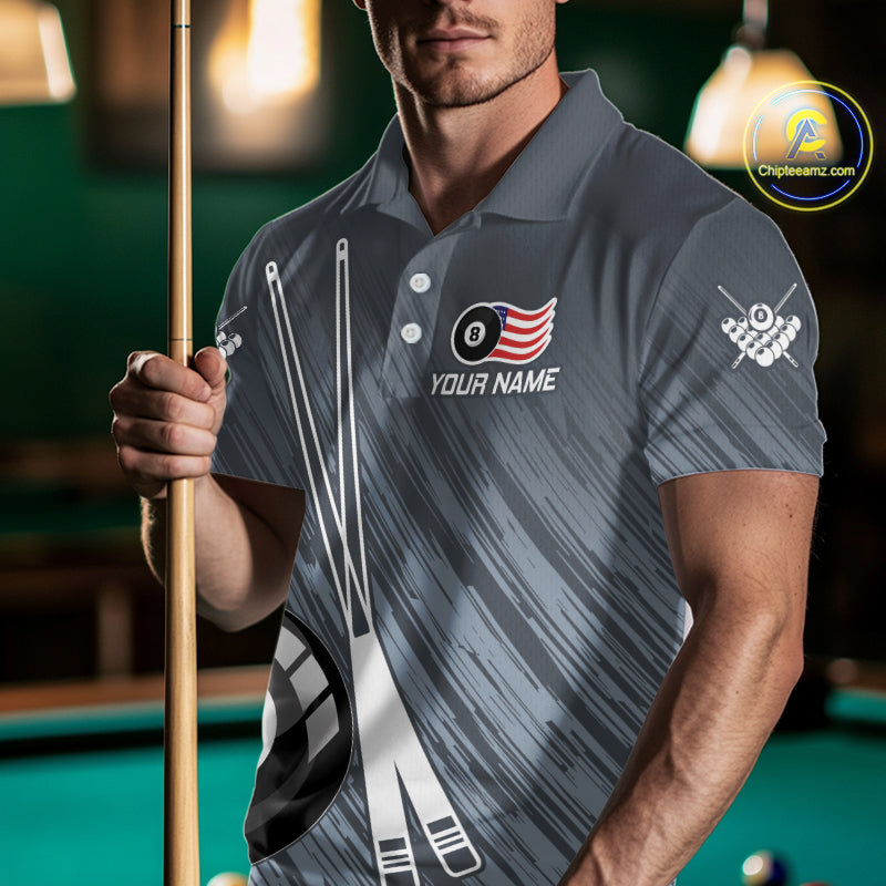 Personalized Billiard US Flag 8 Ball Pool Shirt For Men, Billiard Team Jersey Polo & 1/4 Zip TDM4989