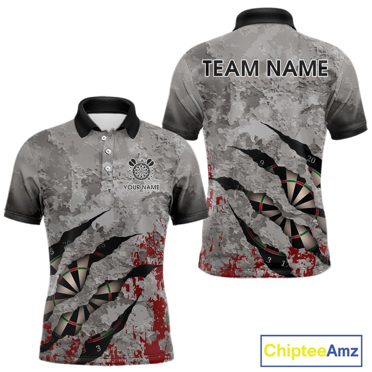 Custom Red And Grey Grunge Darts Shirt For Men, Personalized Darts Jersey Team Polo & 1/4 Zip TDM4995