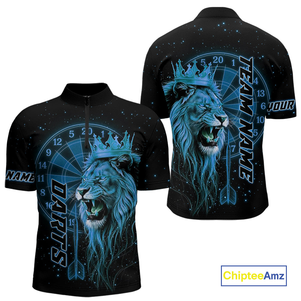 Black And Blue Funny Lion Crown Darts Shirt For Men Custom Darts League Jersey Polo & 1/4 Zip TDM5001