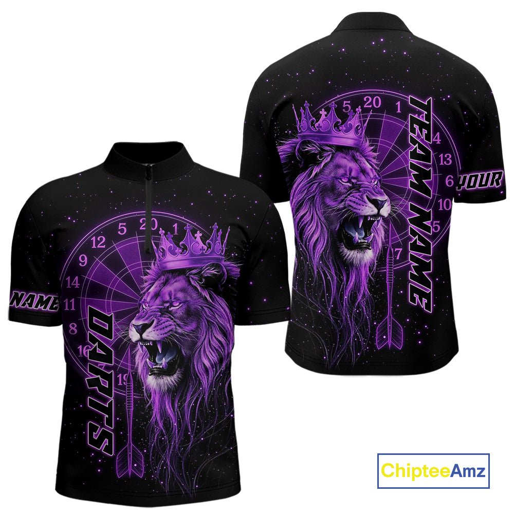 Black And Purple Funny Lion Crown Darts Shirt For Men Custom Darts League Jersey Polo & 1/4 Zip TDM5002