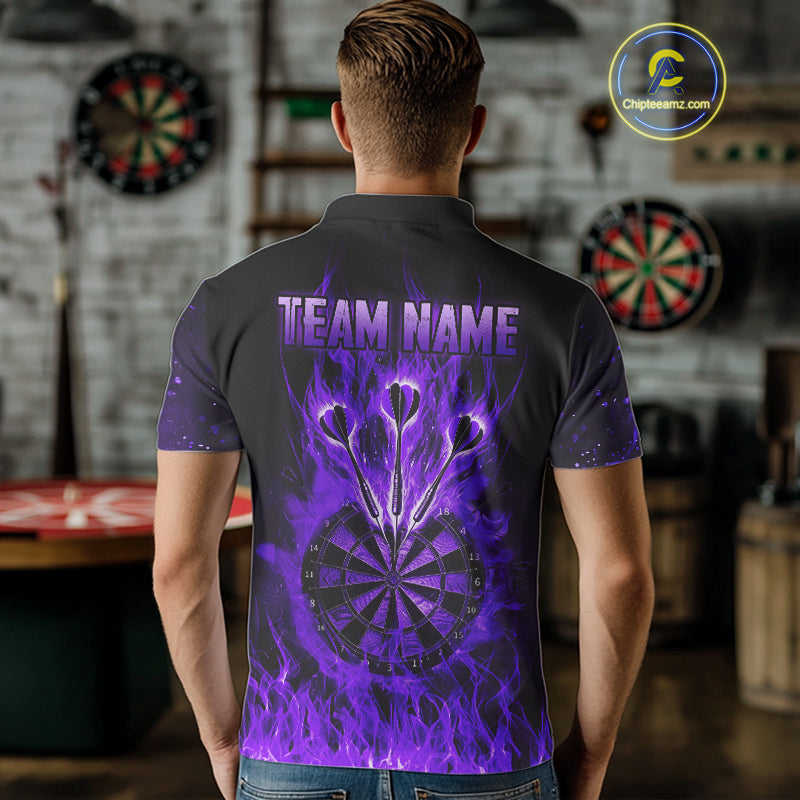Purple Flame Skull Dartboard Shirt For Men Custom Darts League Team Jersey Polo & Quarter Zip TDM5009