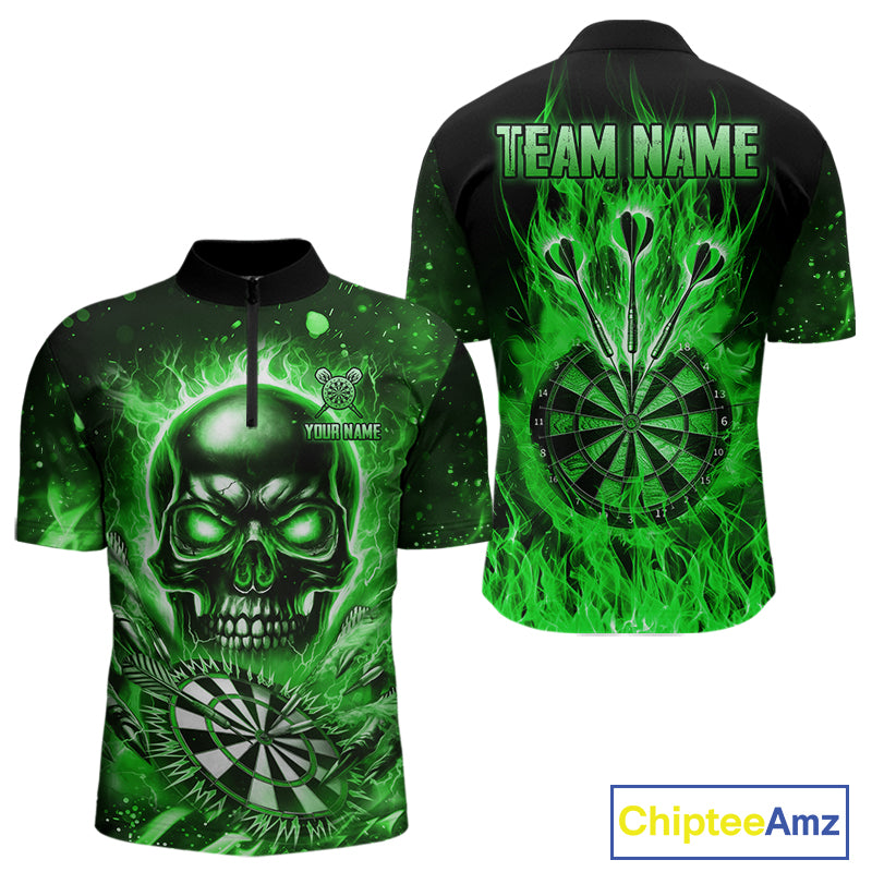 Green Flame Skull Dartboard Shirt For Men Custom Darts League Team Jersey Polo & Quarter Zip TDM5010