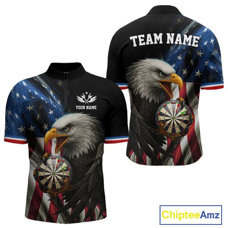 American Flag Eagle Darts Shirt For Men Custom Patriotic Darts Jersey Team Polo & Quarter Zip TDM5012