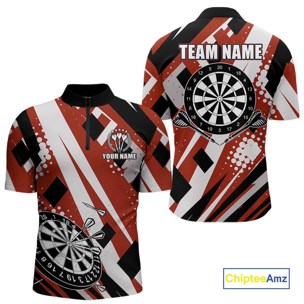 Custom Red Geometric Darts Polo & Quarter Zip For Men, Personalized Darts Team Jersey Outfit TDM5026