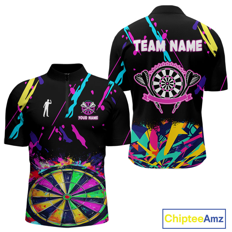 Funny Colorful Splash Dartboard Graffiti Style Darts Shirt For Men Custom Darts Team Jersey Outfit TDM5053