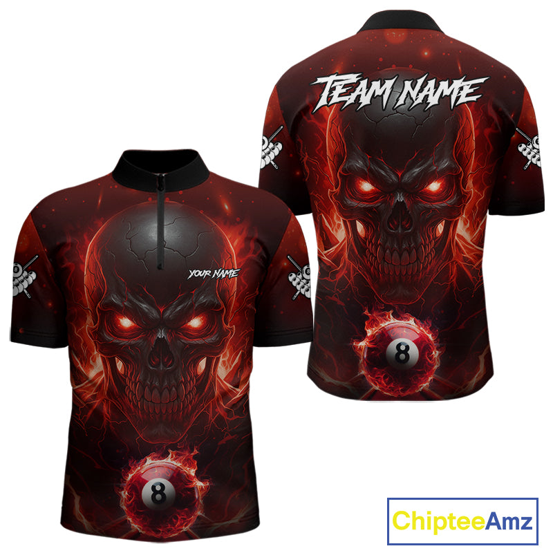 Personalized Red Billiard Skull Fire 8 Ball Pool Shirt For Men Custom Billiard Team Jersey TDM5078