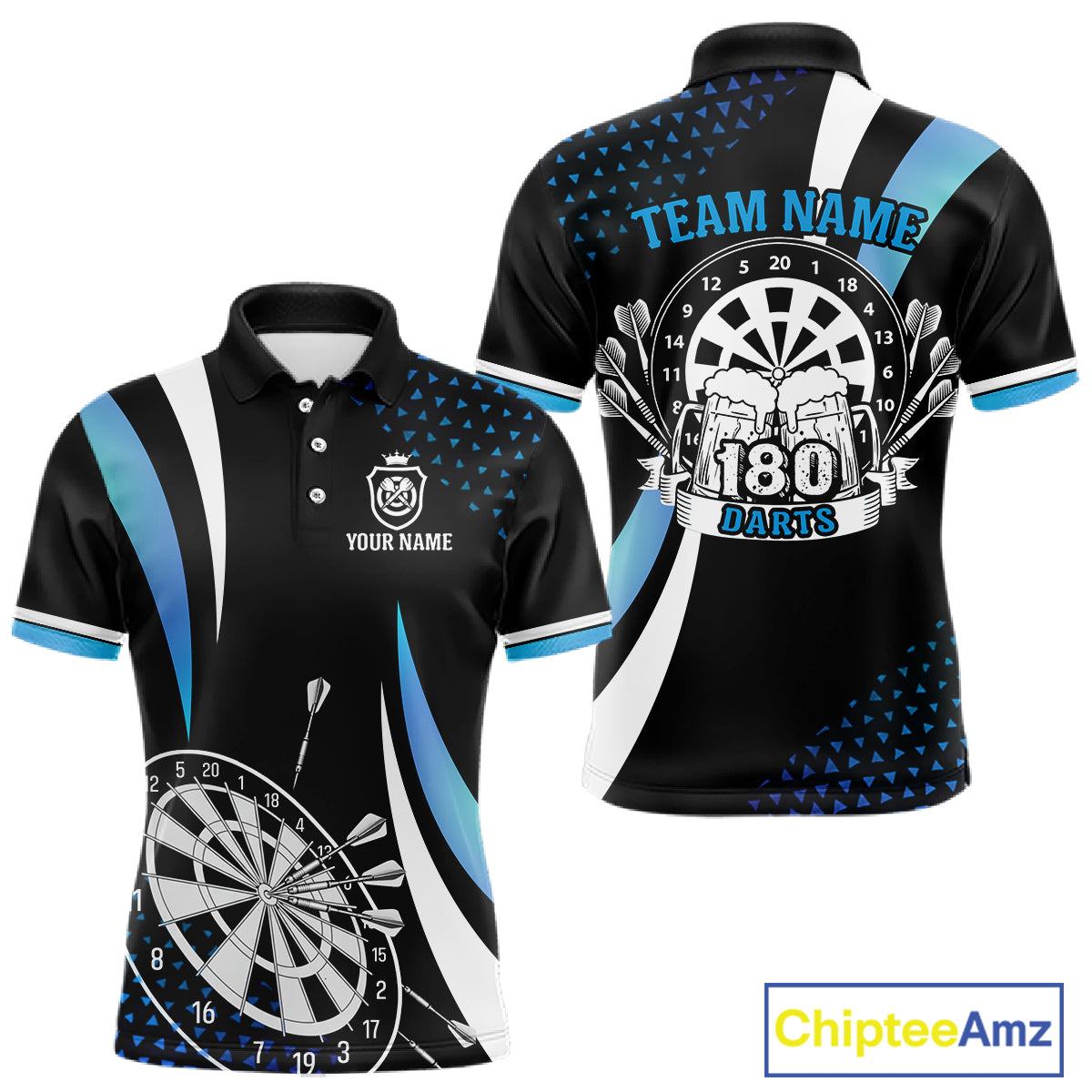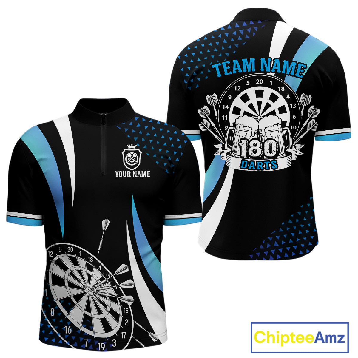 Funny Black And Blue 180 Darts Shirt For Men Custom Dartboard Jersey Team Polo & Quarter Zip TDM5088