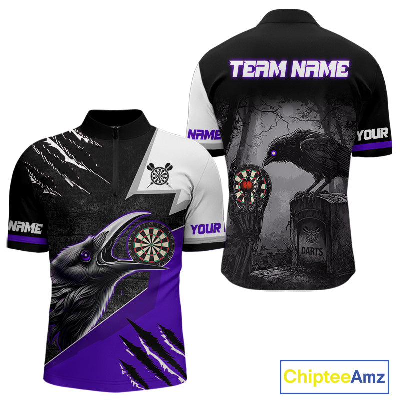 Personalized Raven Darts Shirt For Men Custom Black And Purple Gothic Darts Team Jersey TDM5092