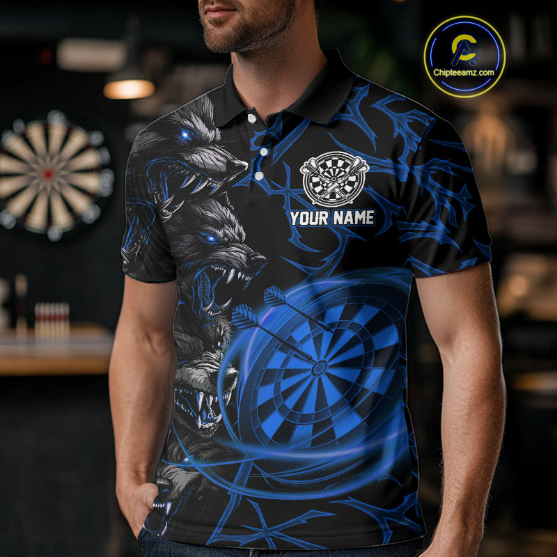 Personalized Wolf Dart Shirts For Men Custom Lights Dartboard Darts Team Jerseys |Blue TDM5095