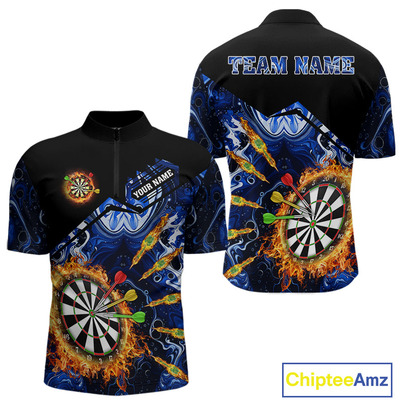 Personalized Blue Dartboard Fire Marble Darts Shirt For Men Custom Dart Team Jersey Polo & 1/4 Zip TDM5096