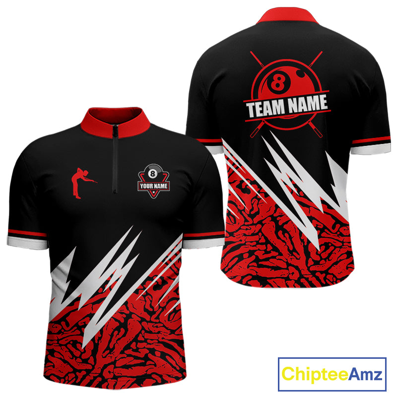 Personalized 8 Ball Billiard Jersey For Men Custom Black And Red Pool Team Shirt Polo & 1/4 Zip TDM5108